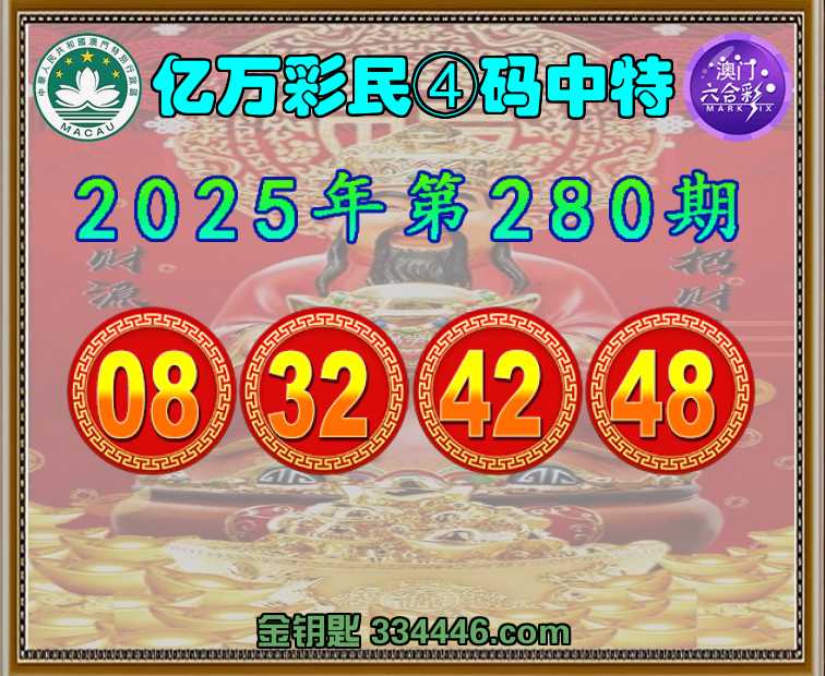 280期:《亿万彩民》 🧶④码中特🧶【08.32.42.48】开:42准上榜高手
