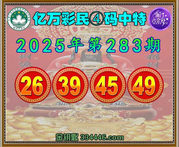 283期:《亿万彩民》 🧶④码中特🧶【26.39.45.49】开:45准上榜高手