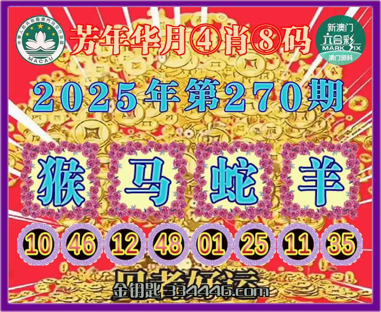 270期:〖芳年华月〗 ✂️④肖⑧码✂️【猴马蛇羊】开:羊35准