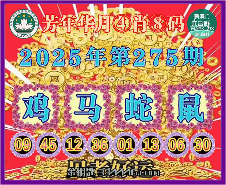 275期:〖芳年华月〗 ✂️④肖⑧码✂️【鸡马蛇鼠】开:鸡45准