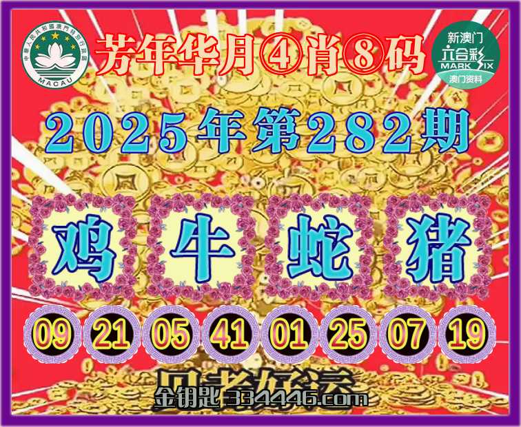282期:〖芳年华月〗 ✂️④肖⑧码✂️【鸡牛蛇猪】开:牛41准