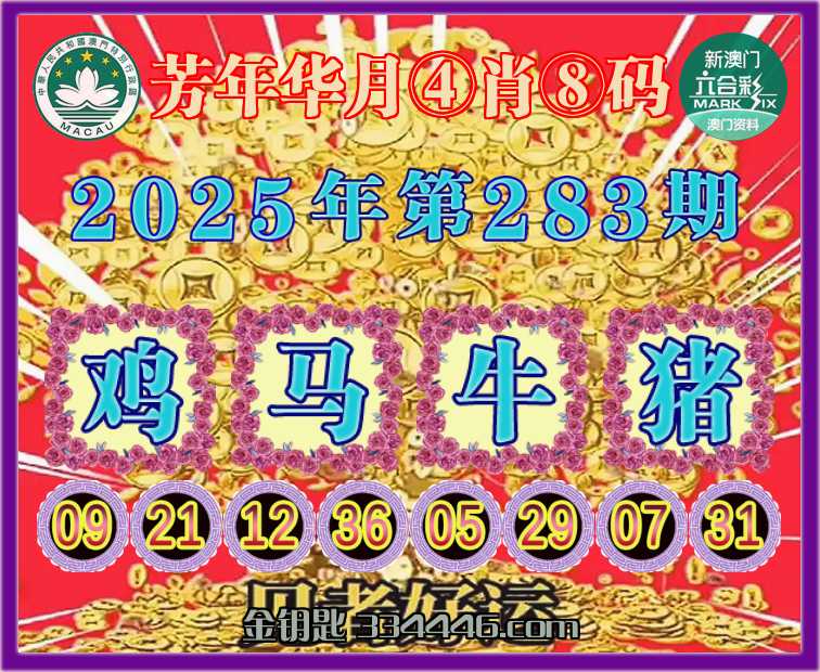 283期:〖芳年华月〗 ✂️④肖⑧码✂️【鸡马牛猪】开:鸡45准上榜高手