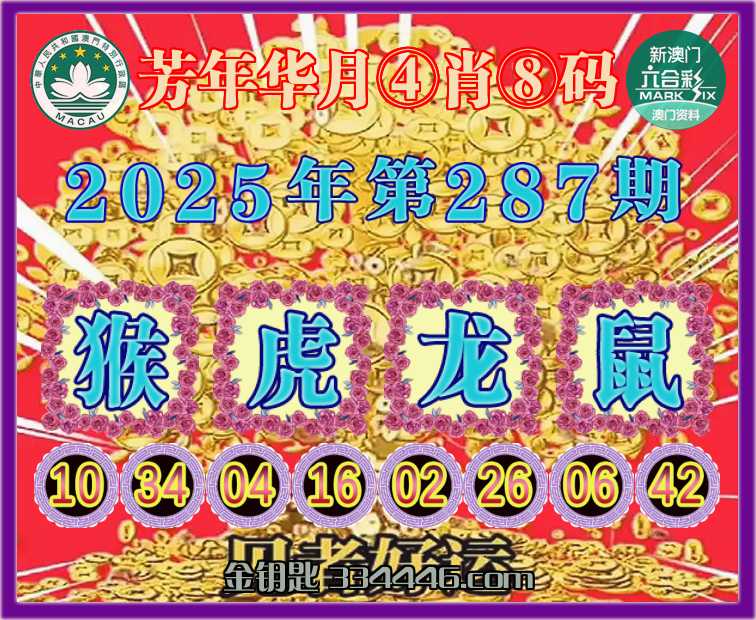 287期:〖芳年华月〗 ✂️④肖⑧码✂️【猴虎龙鼠】开:00准