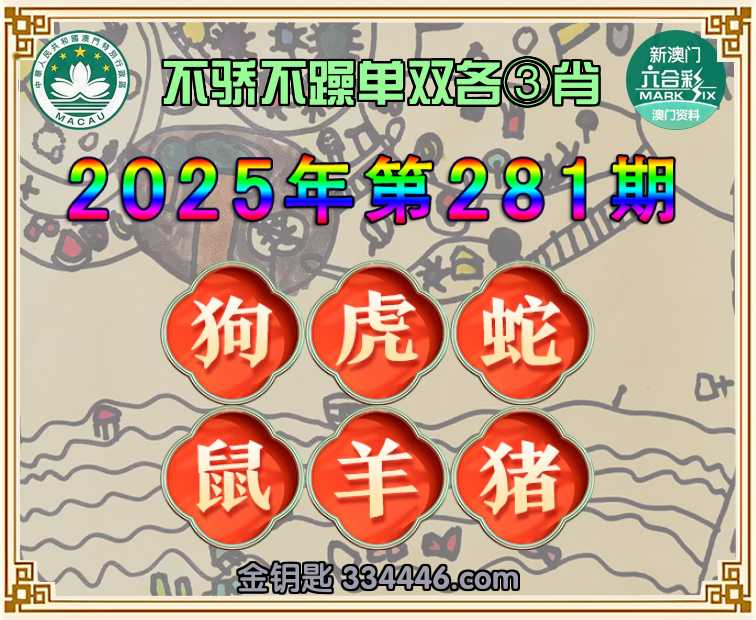 281期:〖不骄不躁〗 ♠️单双各③肖♠️【狗.虎.蛇.鼠.羊.猪】开:羊47准