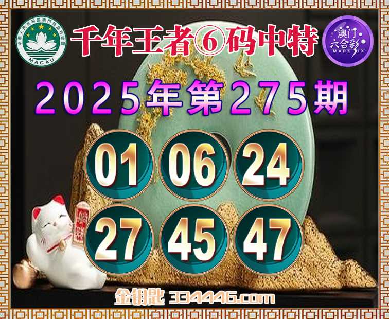 275期:『千年王者』 🍁⑥码中特🍁【01.06.24.27.45.47】开:45准