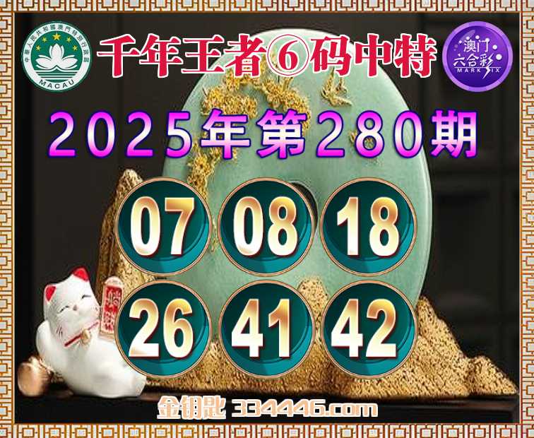 280期:『千年王者』 🍁⑥码中特🍁【07.08.18.26.41.42】开:42准