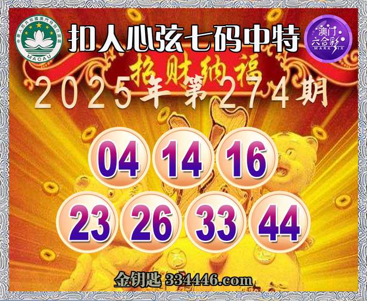 274期:【扣人心弦】 🥼七码中特🥼【04.14.16.23.26.33.44】开:44准