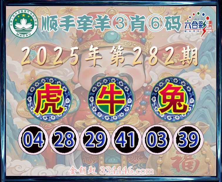 282期:【顺手牵羊】 🌷③肖⑥码🌷【虎牛兔】开:牛41准