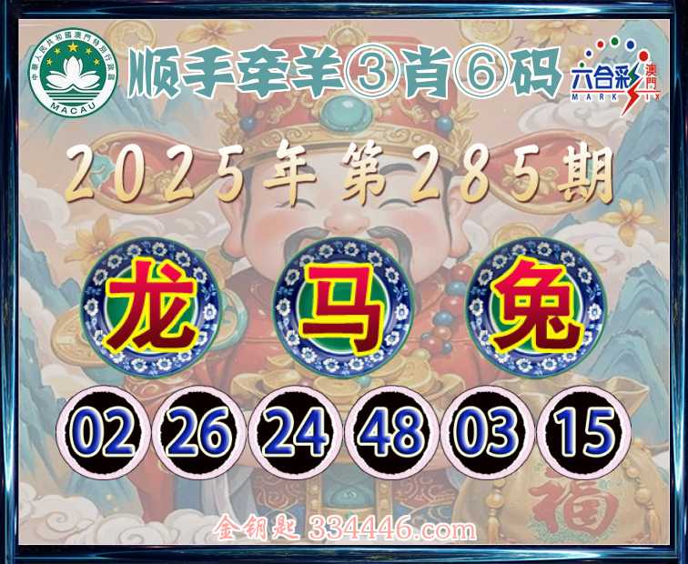 285期:【顺手牵羊】 🌷③肖⑥码🌷【龙马兔】开:马24准