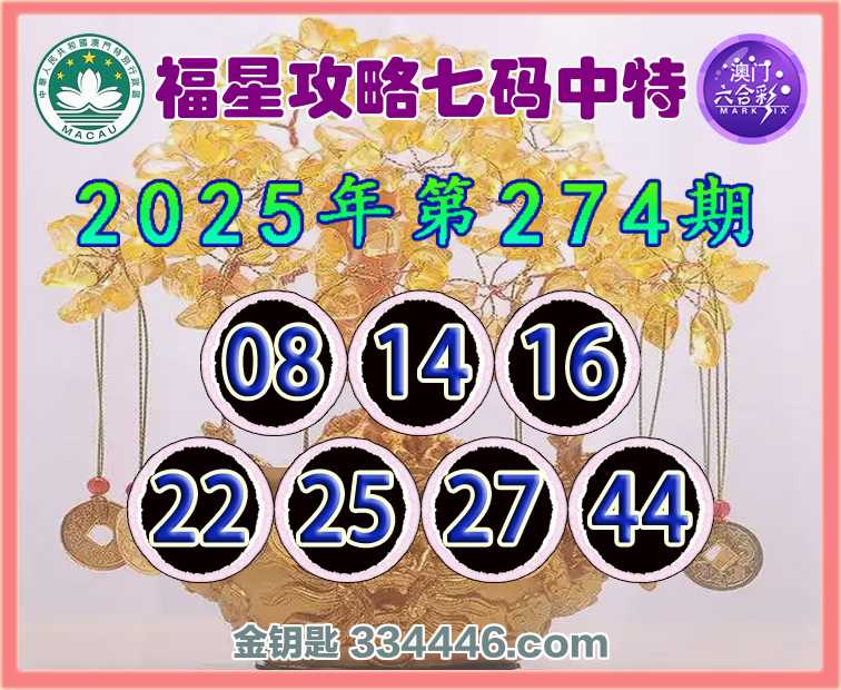 274期:【福星攻略】 🍃七码中特🍃【08.14.16.22.25.27.44】开:44准