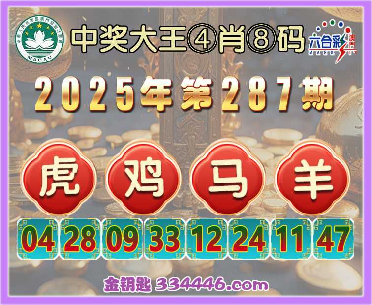 287期:【中奖大王】 ♠️④肖⑧码♠️【虎鸡马羊】开:00准